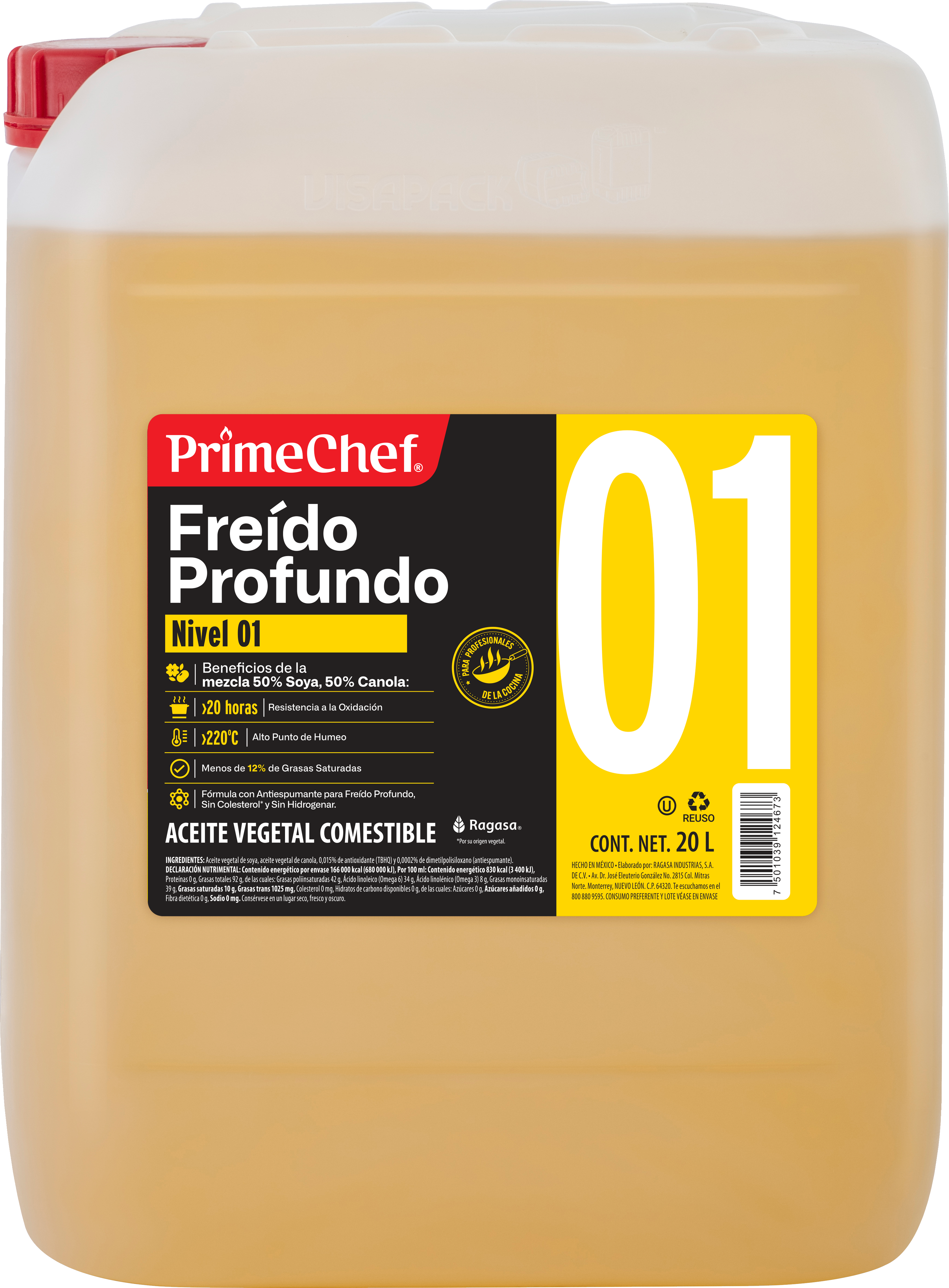 Mezcla balanceada de semillas de soya y canola ideal para profesionales de la cocina que buscan un aceite diseñado especialmente para freír a altas temperaturas.